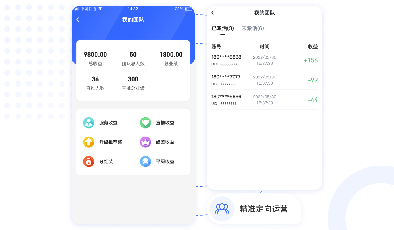 用戶激活收益,團(tuán)隊(duì)推薦獎,團(tuán)隊(duì)極差收益,快速裂變用戶